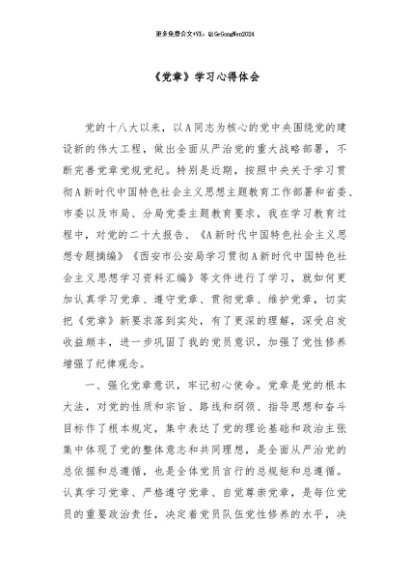 【七哥公文】2024年:《党章》学习心得体会+更多免费公文+VX:QiGeGongWen2024