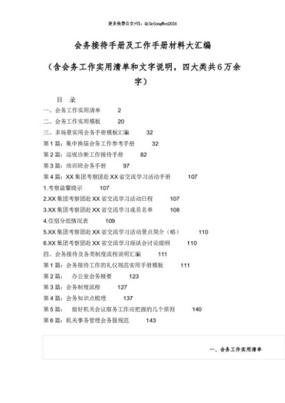 【七哥公文】2024年:会务接待手册及工作手册材料大汇编(含会务工作实用清单和文字说明,四大类共6万余字)+更多免费公文+VX:QiGeGongWen2024
