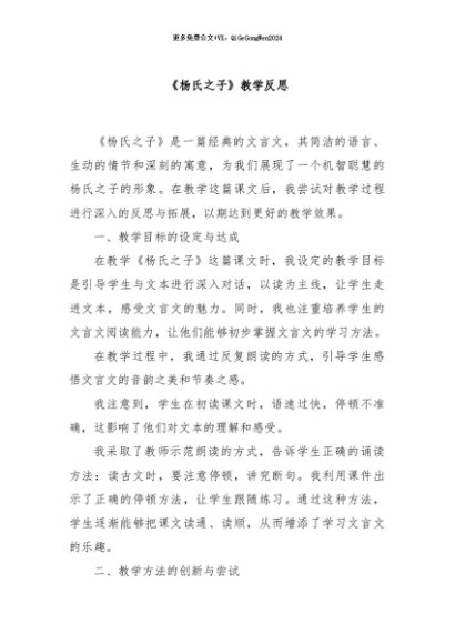/ 【七哥公文】2024年:《杨氏之子》教学反思+更多免费公文+VX:QiGeGongWen2024