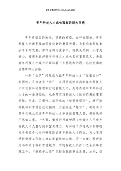 【七哥公文】2024年:青年科技人才成长面临的四大困惑+更多免费公文+VX:QiGeGongWen2024