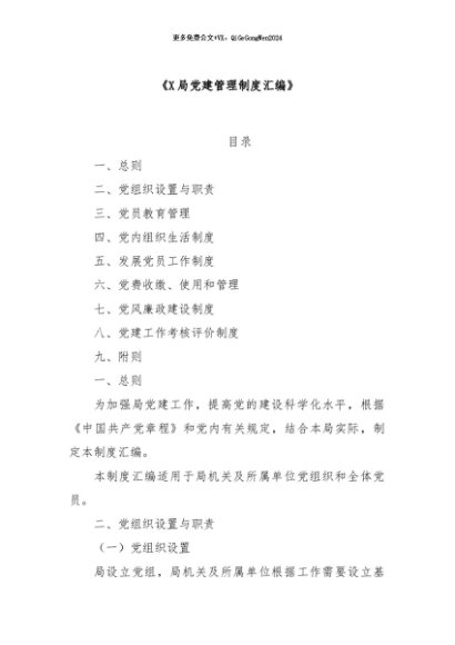【七哥公文】2024年:X局党建管理制度汇编+更多免费公文+VX:QiGeGongWen2024