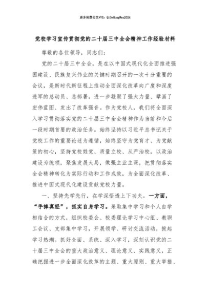 【七哥公文】2024年:党校学习宣传贯彻党的二十届三中全会精神工作经验材料+更多免费公文+VX:QiGeGongWen2024