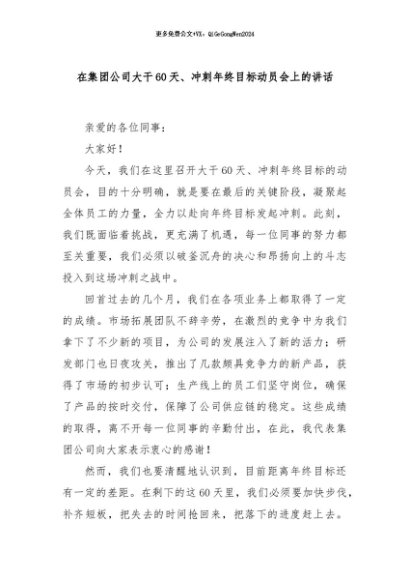 / 【七哥公文】2024年:在集团公司大干60天、冲刺年终目标动员会上的讲话+更多免费公文+VX:QiGeGongWen2024