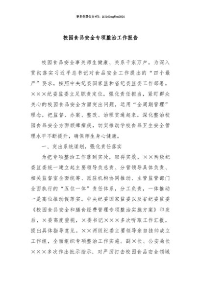 / 【七哥公文】2024年:校园食品安全专项整治工作报告+更多免费公文+VX:QiGeGongWen2024