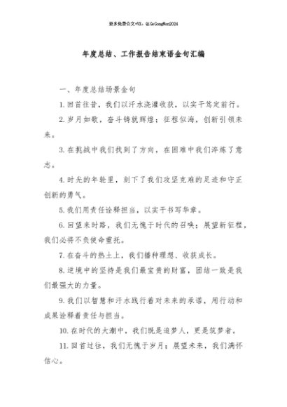 / 【七哥公文】2024年:年度总结、工作报告结束语金句汇编+更多免费公文+VX:QiGeGongWen2024