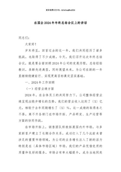 / 【七哥公文】2024年:在国企2024年年终总结会议上的讲话+更多免费公文+VX:QiGeGongWen2024