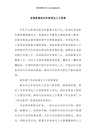 / 【七哥公文】2024年:多维度推动汽车标准化人才培养+更多免费公文+VX:QiGeGongWen2024