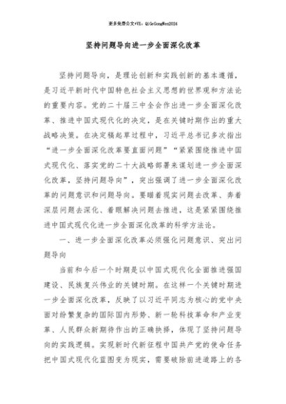 / 【七哥公文】2024年:坚持问题导向进一步全面深化改革+更多免费公文+VX:QiGeGongWen2024