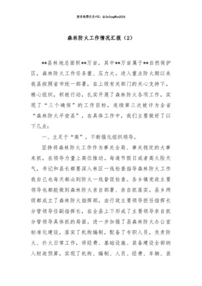 / 【七哥公文】2024年:森林防火工作情况汇报(2)+更多免费公文+VX:QiGeGongWen2024