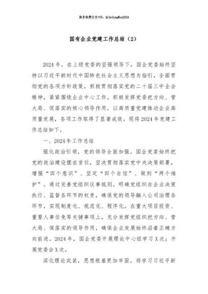 / 【七哥公文】2024年:国有企业党建工作总结(2)+更多免费公文+VX:QiGeGongWen2024