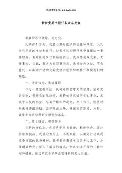 / 【七哥公文】2024年:新任党委书记任职表态发言+更多免费公文+VX:QiGeGongWen2024