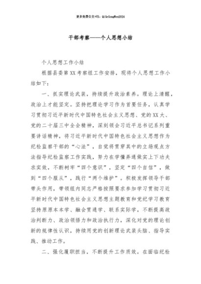 / 【七哥公文】2024年:干部考察——个人思想小结+更多免费公文+VX:QiGeGongWen2024