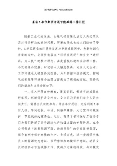 / 【七哥公文】2024年:某省A 单位集团开展节能减排工作汇报+更多免费公文+VX:QiGeGongWen2024