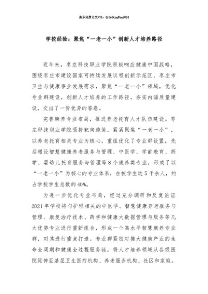 / 【七哥公文】2024年:学校经验:聚焦“一老一小”创新人才培养路径+更多免费公文+VX:QiGeGongWen2024