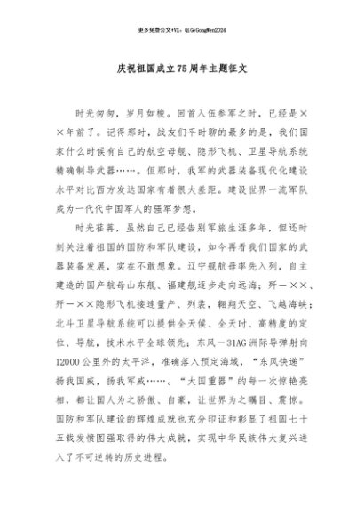 【七哥公文】2024年:庆祝祖国成立75周年主题征文+更多免费公文+VX:QiGeGongWen2024