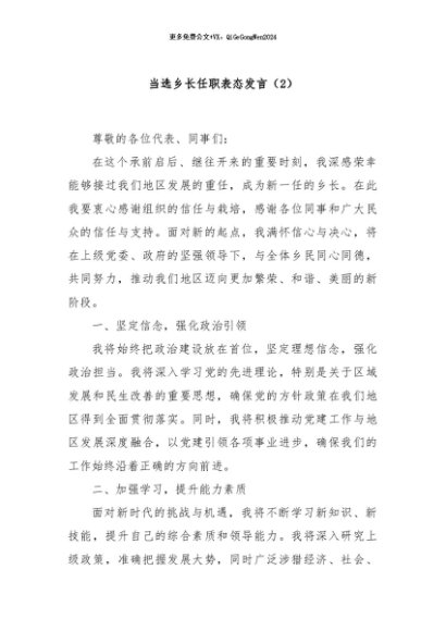 / 【七哥公文】2024年:当选乡长任职表态发言(2)+更多免费公文+VX:QiGeGongWen2024