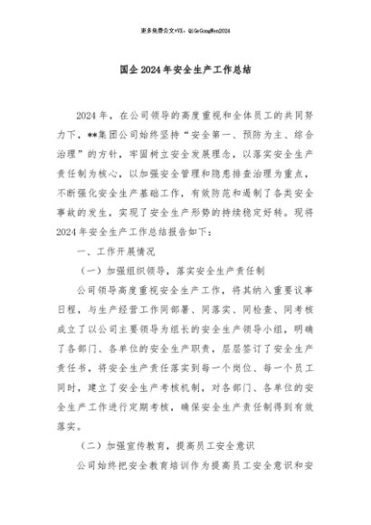 / 【七哥公文】2024年:国企2024年安全生产工作总结+更多免费公文+VX:QiGeGongWen2024