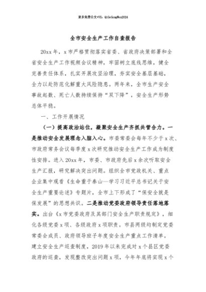 / 【七哥公文】2024年:全市安全生产工作自查报告+更多免费公文+VX:QiGeGongWen2024
