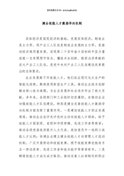 / 【七哥公文】2024年:健全技能人才激励导向机制+更多免费公文+VX:QiGeGongWen2024