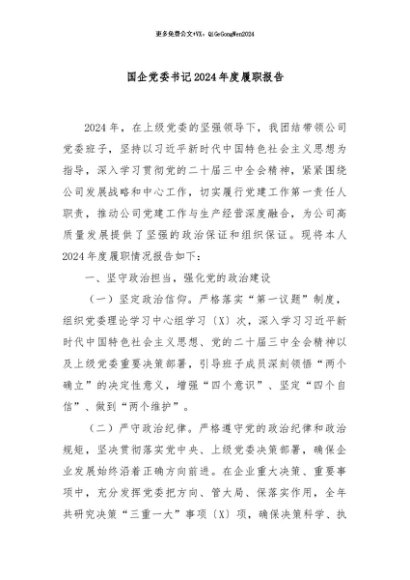 / 【七哥公文】2024年:国企党委书记2024年度履职报告+更多免费公文+VX:QiGeGongWen2024