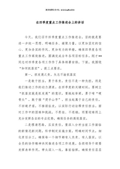 / 【七哥公文】2024年:在四季度重点工作推进会上的讲话+更多免费公文+VX:QiGeGongWen2024