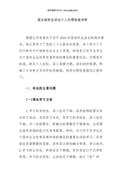 / 【七哥公文】2024年:国企组织生活会个人对照检查材料+更多免费公文+VX:QiGeGongWen2024