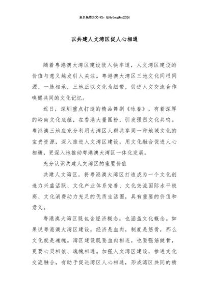 【七哥公文】2024年:以共建人文湾区促人心相通+更多免费公文+VX:QiGeGongWen2024