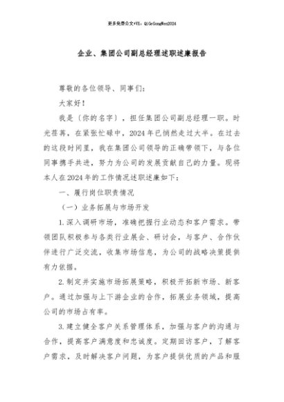 / 【七哥公文】2024年:企业、集团公司副总经理述职述廉报告+更多免费公文+VX:QiGeGongWen2024