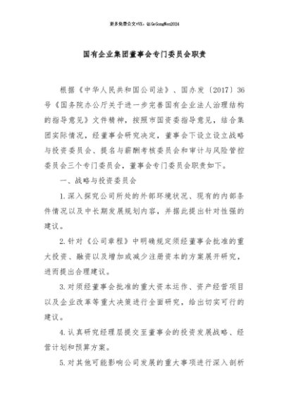 / 【七哥公文】2024年:国有企业集团董事会专门委员会职责+更多免费公文+VX:QiGeGongWen2024