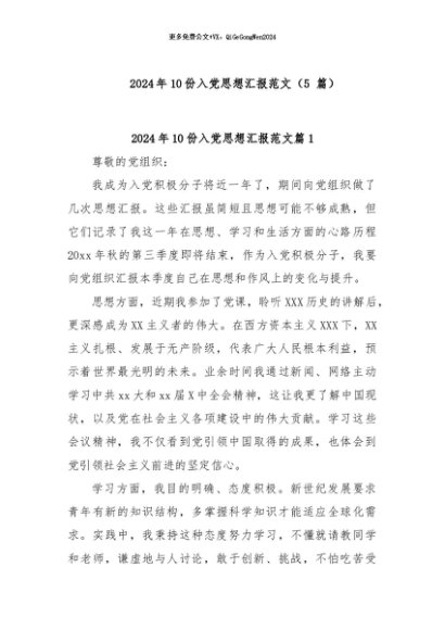 / 【七哥公文】2024年:(5篇)2024年10份入党思想汇报范文+更多免费公文+VX:QiGeGongWen2024