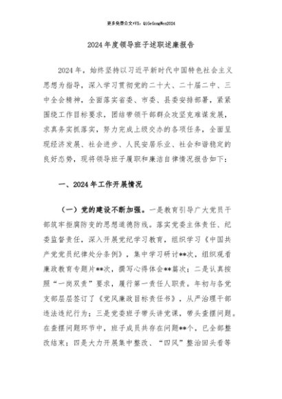 / 【七哥公文】2024年:2024年度领导班子述职述廉报告+更多免费公文+VX:QiGeGongWen2024