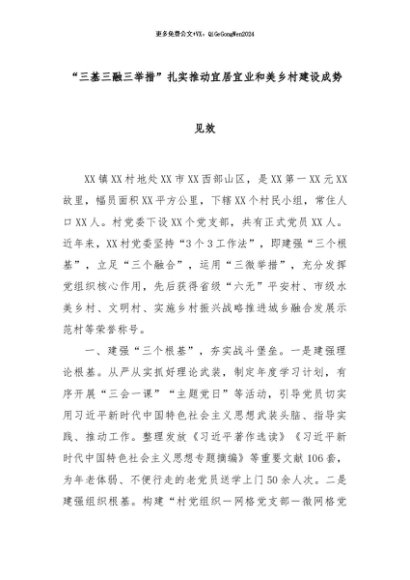 【七哥公文】2024年:“三基三融三举措”扎实推动宜居宜业和美乡村建设成势见效+更多免费公文+VX:QiGeGongWen2024