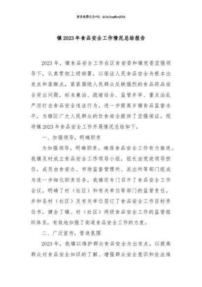/ 【七哥公文】2024年:镇2023年食品安全工作情况总结报告+更多免费公文+VX:QiGeGongWen2024