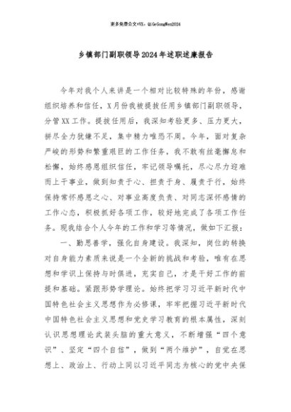 / 【七哥公文】2024年:乡镇部门副职领导2024年述职述廉报告+更多免费公文+VX:QiGeGongWen2024