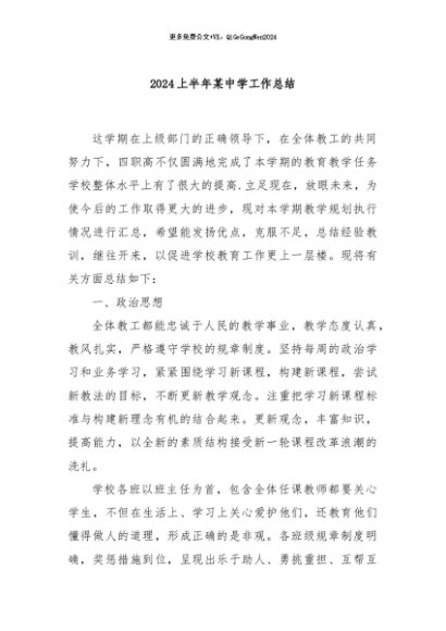/ 【七哥公文】2024年:2024上半年某中学工作总结+更多免费公文+VX:QiGeGongWen2024