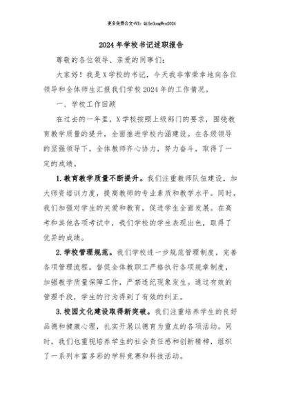 / 【七哥公文】2024年:2024年学校书记述职报告+更多免费公文+VX:QiGeGongWen2024