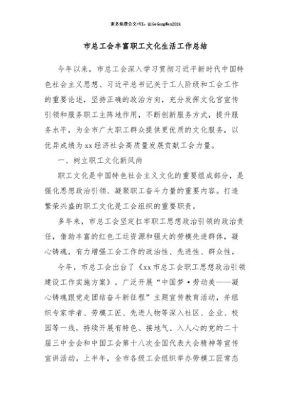 / 【七哥公文】2024年:市总工会丰富职工文化生活工作总结+更多免费公文+VX:QiGeGongWen2024