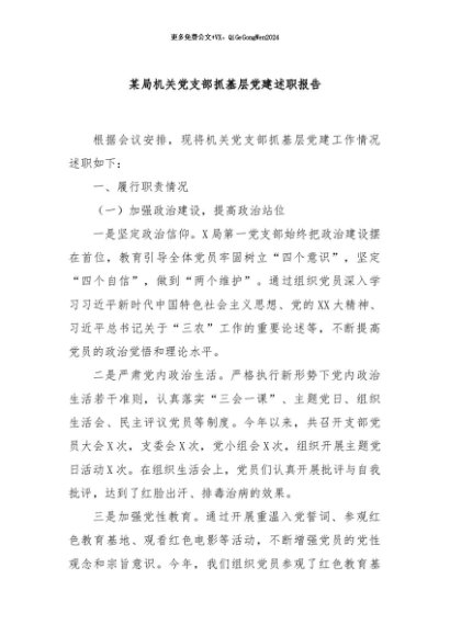 / 【七哥公文】2024年:某局机关党支部抓基层党建述职报告+更多免费公文+VX:QiGeGongWen2024