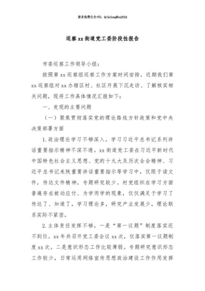 / 【七哥公文】2024年:巡察xx街道党工委阶段性报告+更多免费公文+VX:QiGeGongWen2024