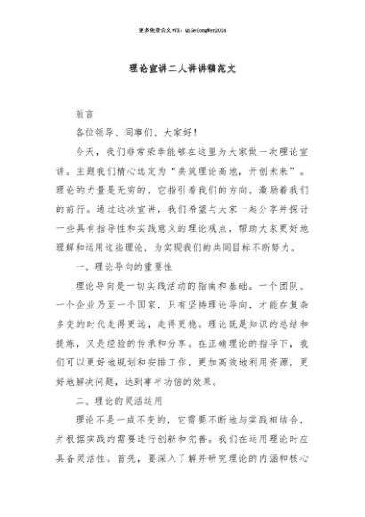 / 【七哥公文】2024年:理论宣讲二人讲讲稿范文+更多免费公文+VX:QiGeGongWen2024