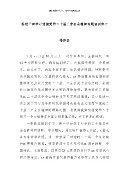【七哥公文】2024年:科级干部学习贯彻党的二十届三中全会精神专题培训班心得体会+更多免费公文+VX:QiGeGongWen2024