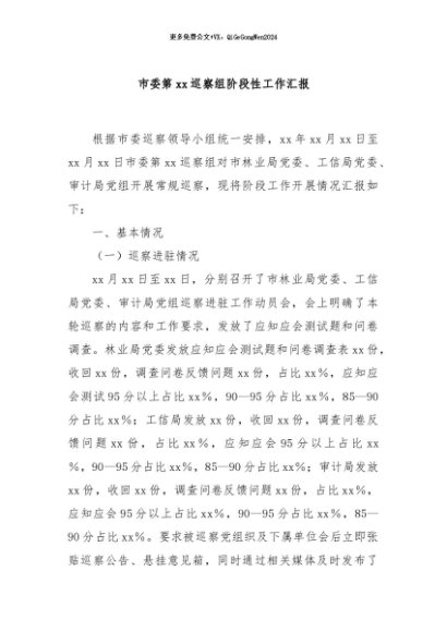 / 【七哥公文】2024年:市委第xx巡察组阶段性工作汇报+更多免费公文+VX:QiGeGongWen2024