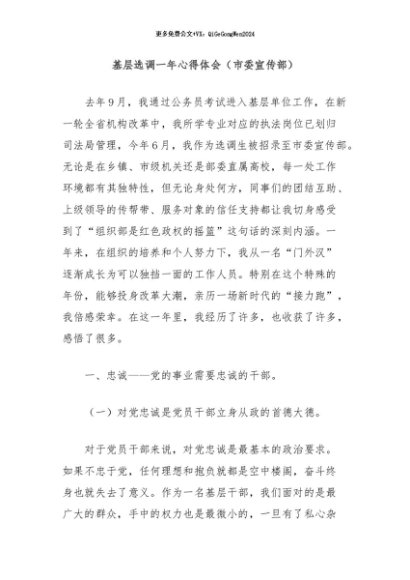 / 【七哥公文】2024年:基层选调一年心得体会(市委宣传部)+更多免费公文+VX:QiGeGongWen2024