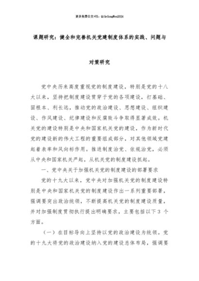 【七哥公文】2024年:课题研究:健全和完善机关党建制度体系的实践、问题与对策研究+更多免费公文+VX:QiGeGongWen2024