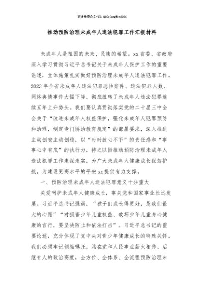 / 【七哥公文】2024年:推动预防治理未成年人违法犯罪工作汇报材料+更多免费公文+VX:QiGeGongWen2024