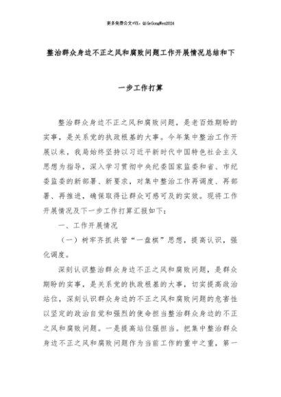 【七哥公文】2024年:整治群众身边不正之风和腐败问题工作开展情况总结和下一步工作打算+更多免费公文+VX:QiGeGongWen2024
