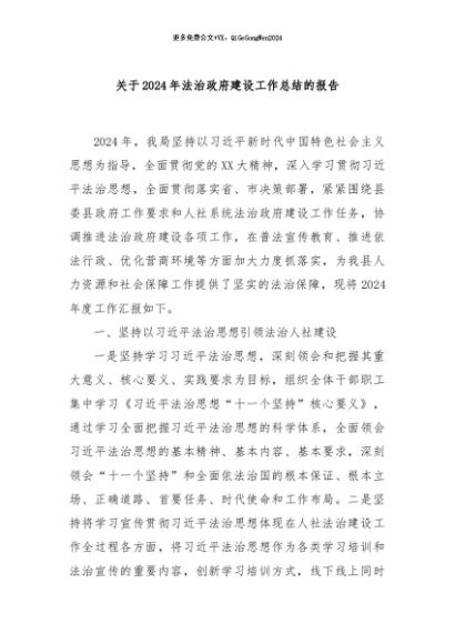 / 【七哥公文】2024年:关于2024年法治政府建设工作总结的报告+更多免费公文+VX:QiGeGongWen2024