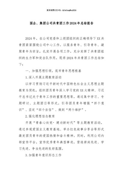 / 【七哥公文】2024年:国企、集团公司共青团工作2024年总结报告+更多免费公文+VX:QiGeGongWen2024