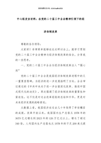 【七哥公文】2024年:中心组发言材料:在党的二十届三中全会精神引领下的经济体制改革+更多免费公文+VX:QiGeGongWen2024