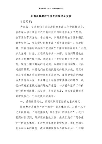 / 【七哥公文】2024年:乡镇巡察整改工作专题推进会发言+更多免费公文+VX:QiGeGongWen2024